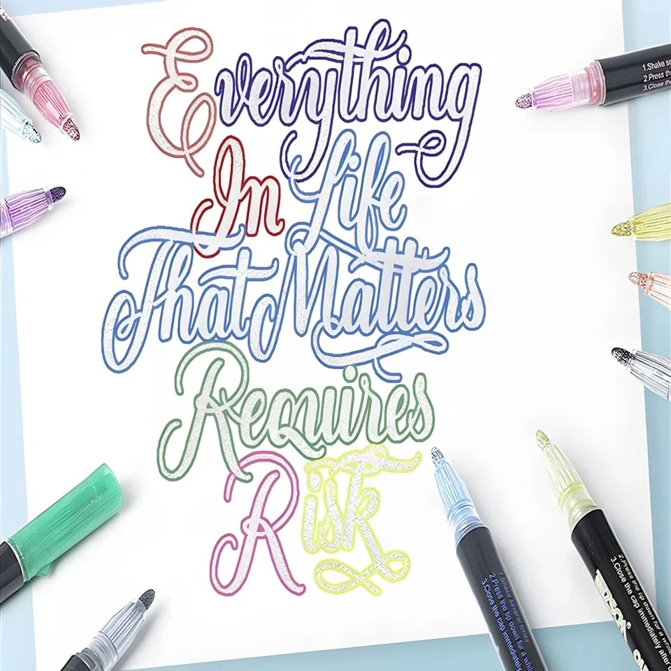 - Efecto Doble Color: Estos rotuladores tienen un diseño innovador que crea una línea metálica de plata rodeada de bordes de colores, generando un hermoso efecto visual de doble color.