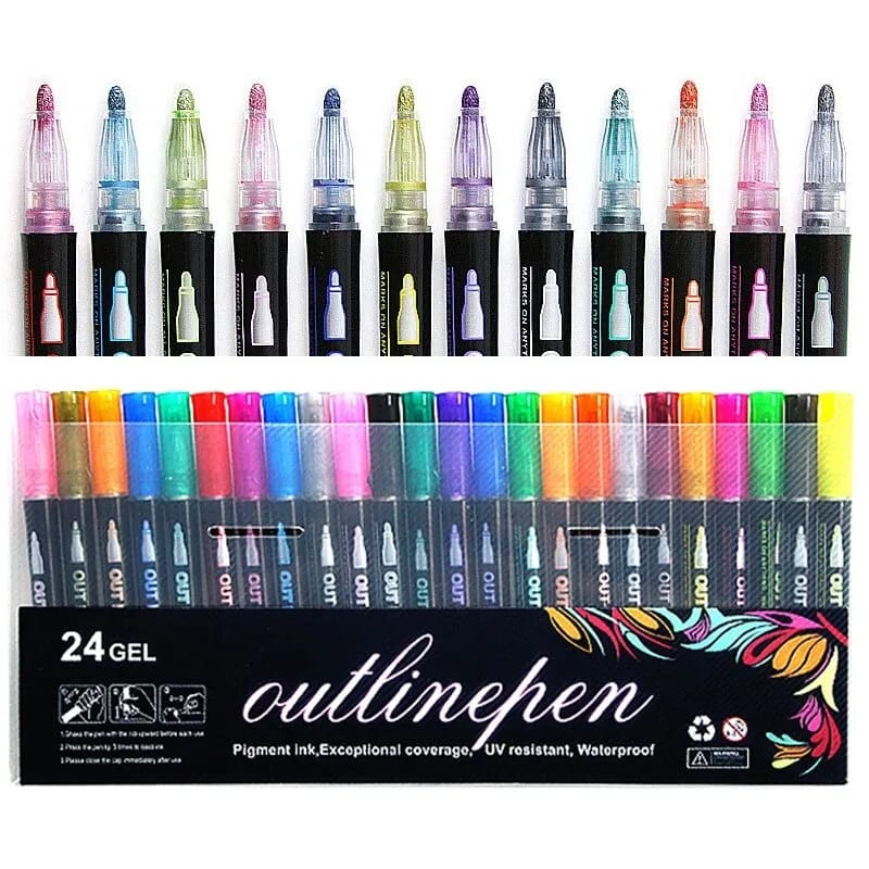 Los Marcadores Mágicos 24 Colores Gel Doble Línea Metalizada son una opción excelente para quienes disfrutan de crear arte, escribir o personalizar tarjetas de una forma única. Aquí tienes un resumen de sus características y cómo utilizarlos correctamente: